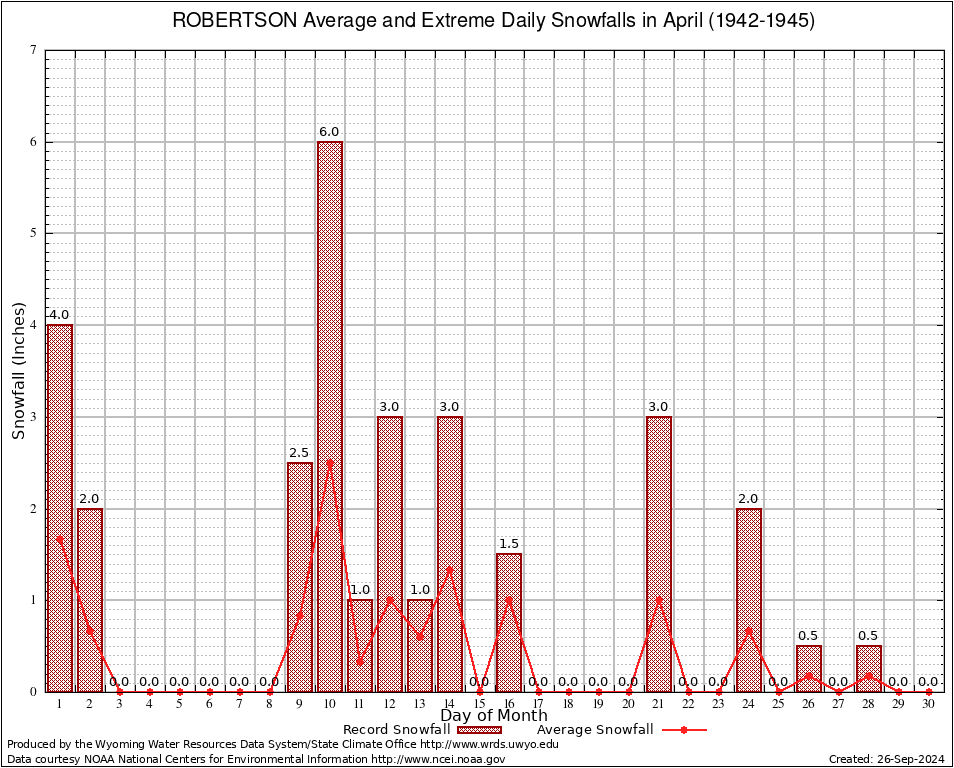April Average and Extreme Daily Snowfall AMounts (1942-1945)