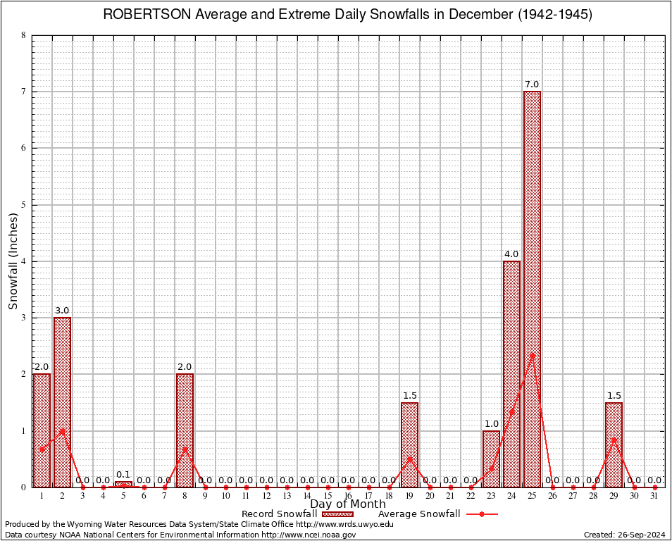 ROBERTSON (487795) December Average and Extreme Daily Snowfall AMounts (1942-1945) To index page for ROBERTSON