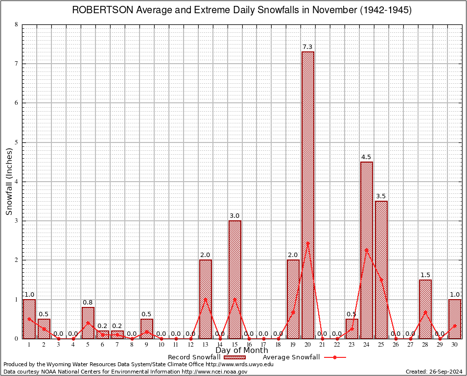 ROBERTSON (487795) November Average and Extreme Daily Snowfall AMounts (1942-1945) To index page for ROBERTSON