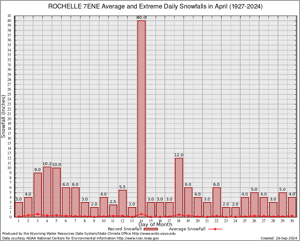 April Average and Extreme Daily Snowfall AMounts (1927-2024)