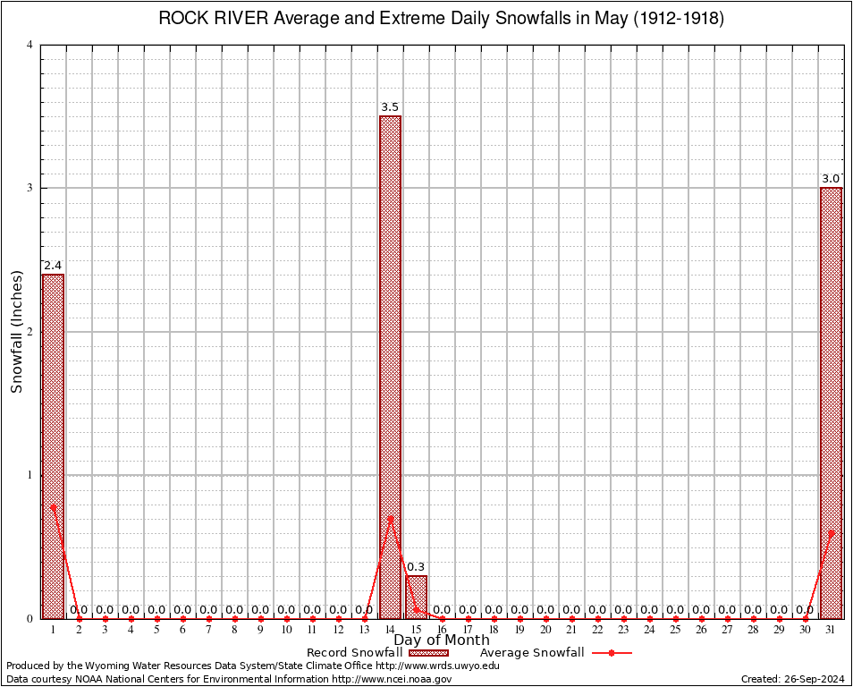 May Average and Extreme Daily Snowfall AMounts (1912-1918)