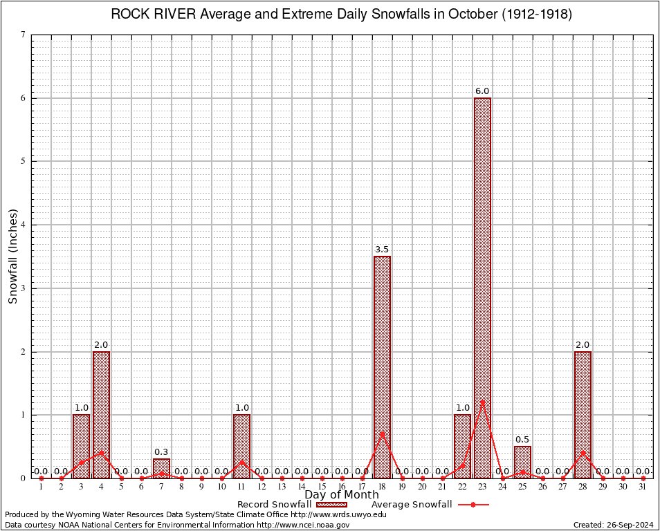 October Average and Extreme Daily Snowfall AMounts (1912-1918)