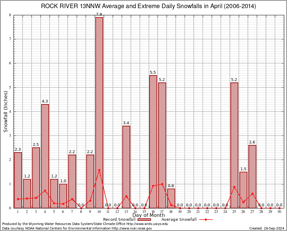 April Average and Extreme Daily Snowfall AMounts (2006-2014)
