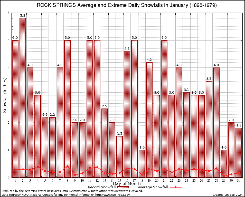 January Average and Extreme Daily Snowfall AMounts (1898-1979)