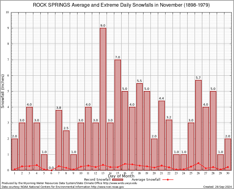 November Average and Extreme Daily Snowfall AMounts (1898-1979)