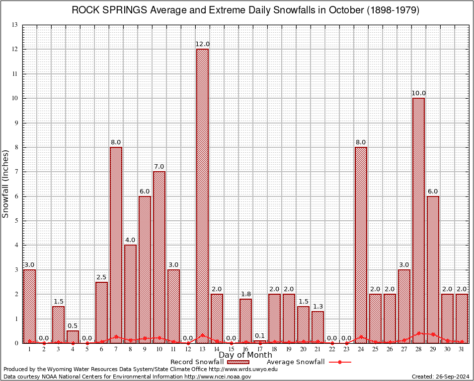 October Average and Extreme Daily Snowfall AMounts (1898-1979)