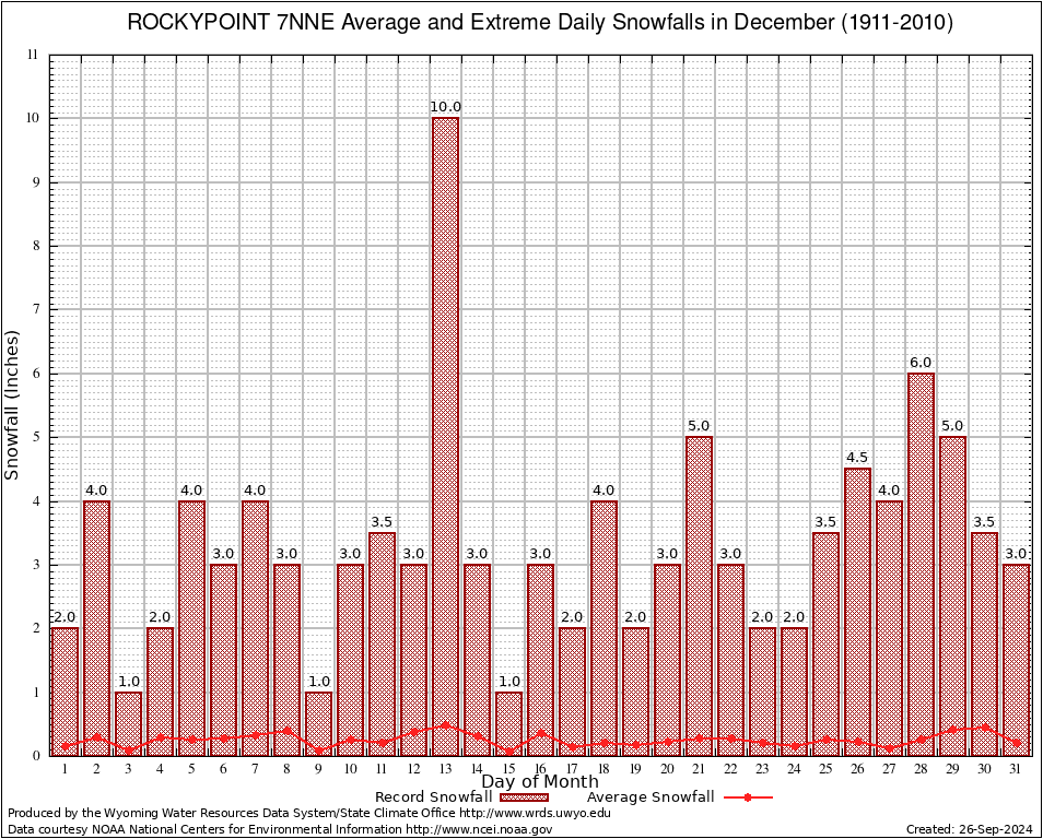 December Average and Extreme Daily Snowfall AMounts (1911-2010)