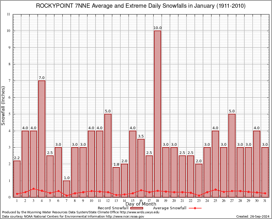 January Average and Extreme Daily Snowfall AMounts (1911-2010)