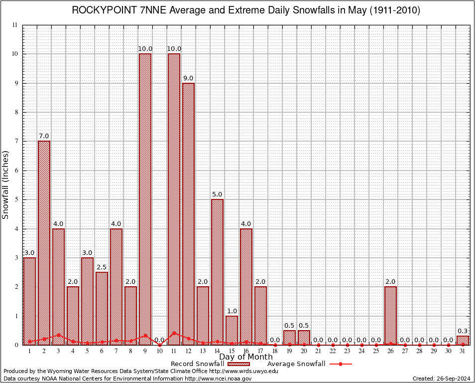 May Average and Extreme Daily Snowfall AMounts (1911-2010)