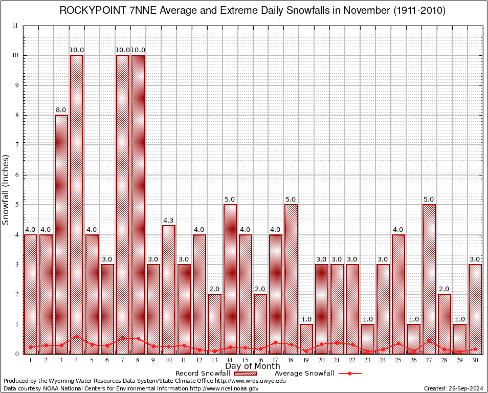 November Average and Extreme Daily Snowfall AMounts (1911-2010)
