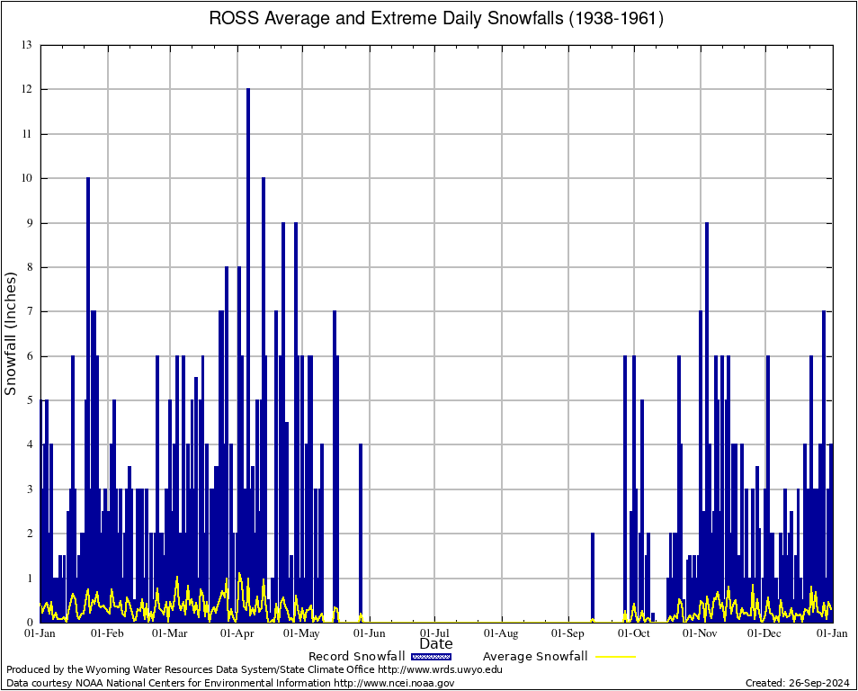 ROSS (487895) Annual Average and Extreme Daily Snowfall AMounts (1938-1961) To index page for ROSS