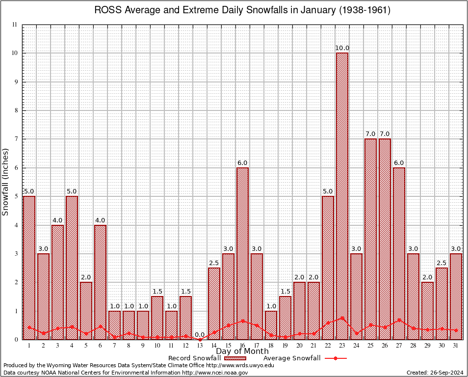 ROSS (487895) January Average and Extreme Daily Snowfall AMounts (1938-1961) To index page for ROSS