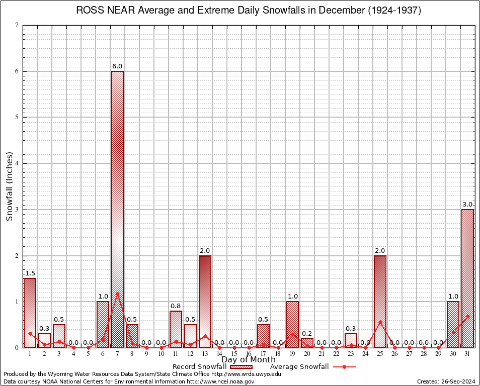 ROSS NEAR (487898) December Average and Extreme Daily Snowfall AMounts (1924-1937) To index page for ROSS NEAR