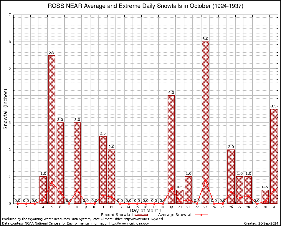 ROSS NEAR (487898) October Average and Extreme Daily Snowfall AMounts (1924-1937) To index page for ROSS NEAR