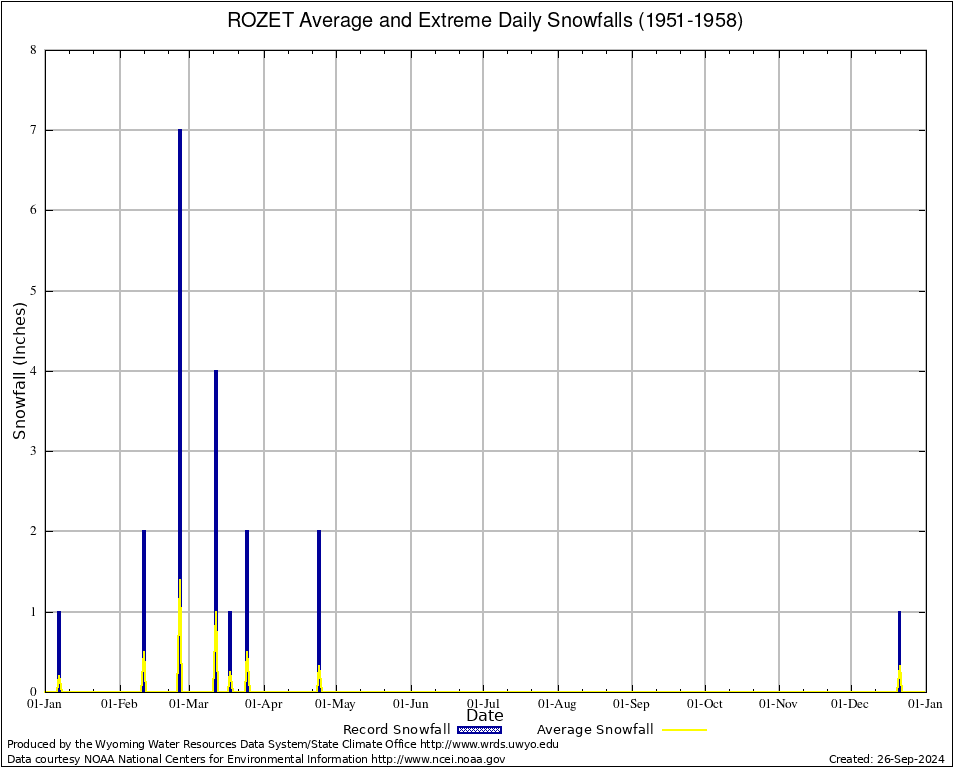 ROZET (487907) Annual Average and Extreme Daily Snowfall AMounts (1951-1958) To index page for ROZET