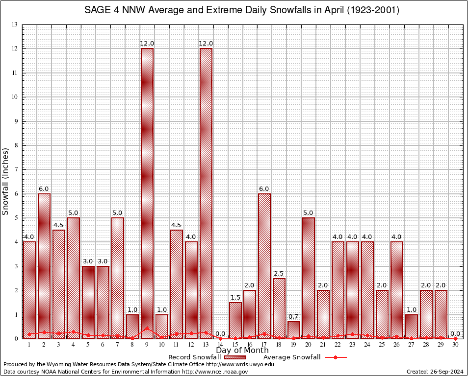 April Average and Extreme Daily Snowfall AMounts (1923-2001)