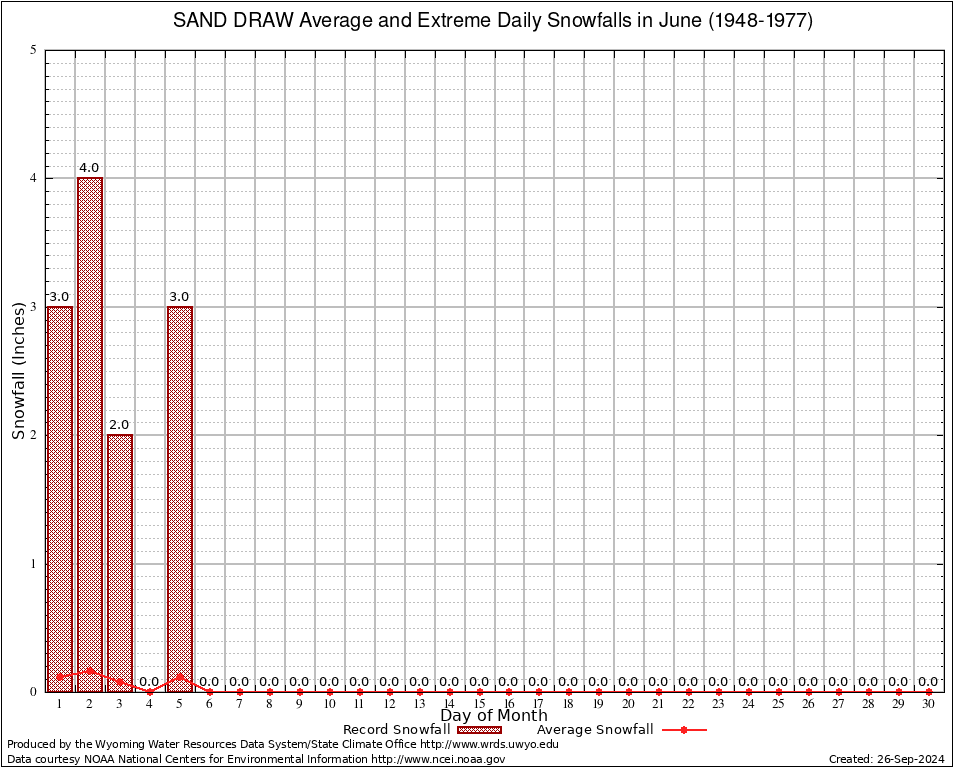 June Average and Extreme Daily Snowfall AMounts (1948-1977)