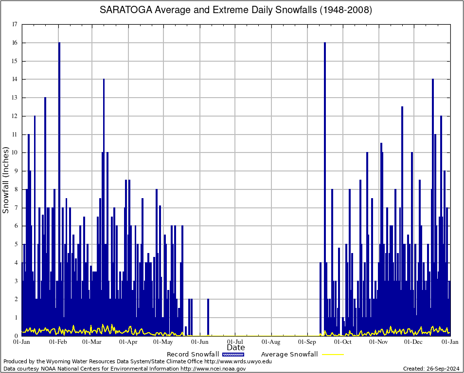 SARATOGA (487990) Annual Average and Extreme Daily Snowfall AMounts (1948-2008) To index page for SARATOGA