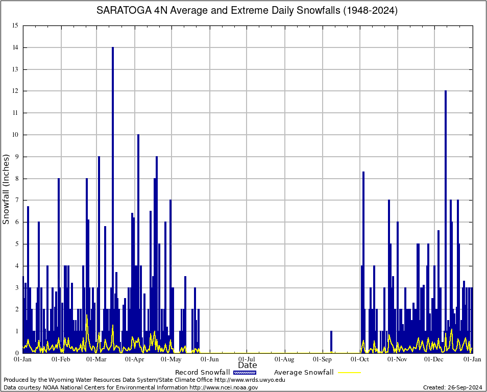Annual Average and Extreme Daily Snowfall AMounts (1948-2024)