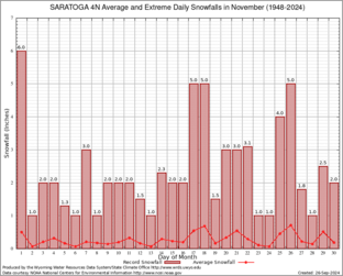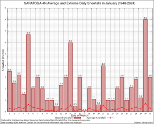 Record Extreme and Average Daily Snowfall (1948-2024)
