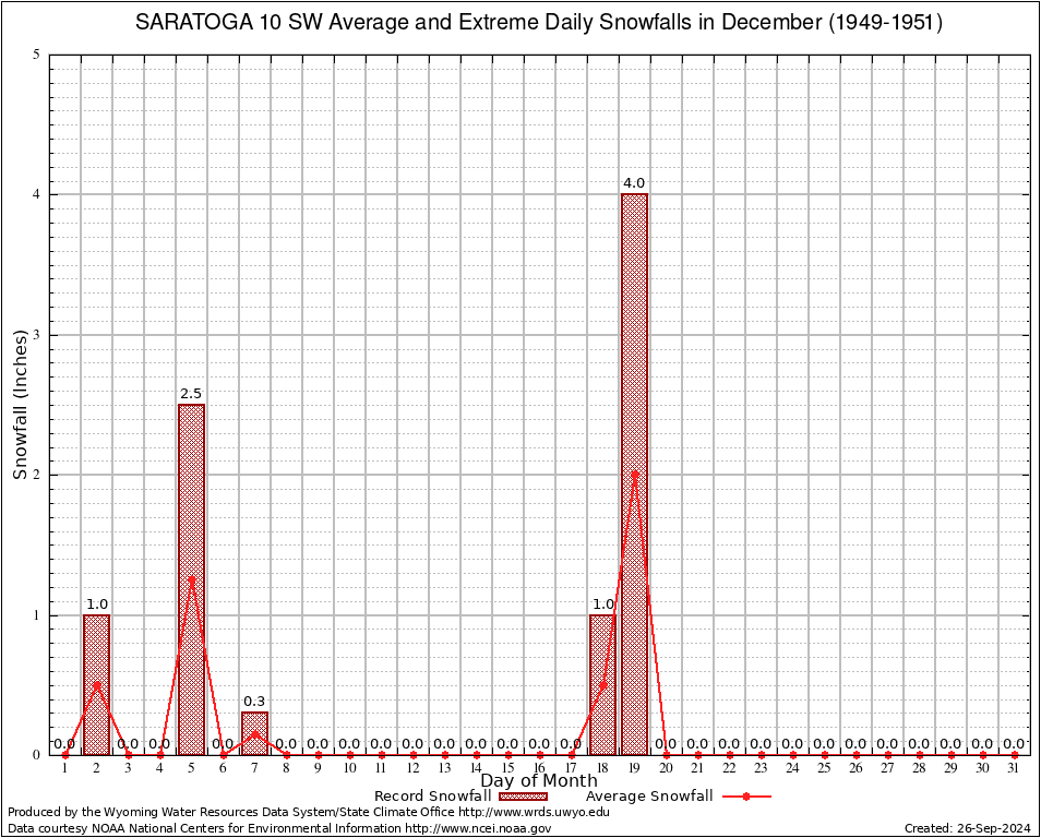 December Average and Extreme Daily Snowfall AMounts (1949-1951)