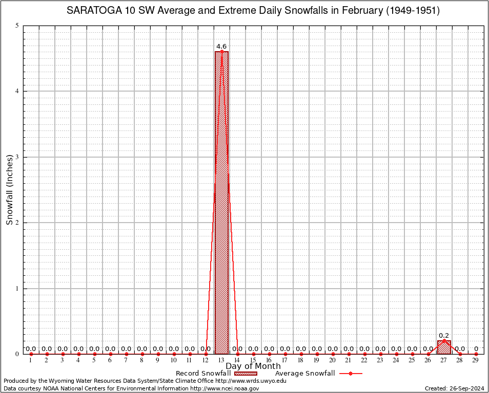 February Average and Extreme Daily Snowfall AMounts (1949-1951)