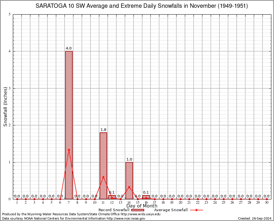 November Average and Extreme Daily Snowfall AMounts (1949-1951)