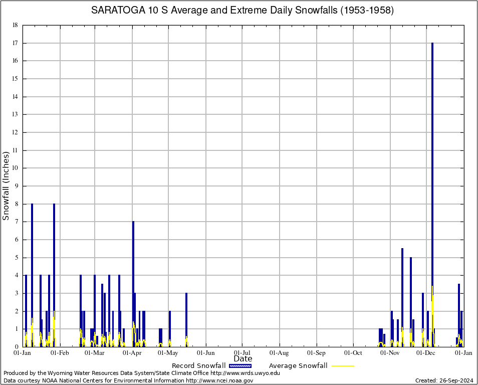 Annual Average and Extreme Daily Snowfall AMounts (1953-1958)