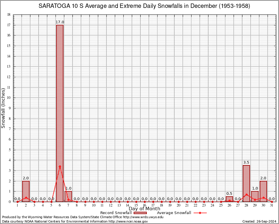 December Average and Extreme Daily Snowfall AMounts (1953-1958)