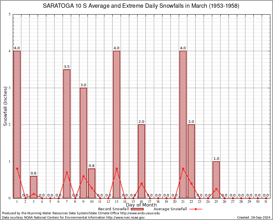 March Average and Extreme Daily Snowfall AMounts (1953-1958)