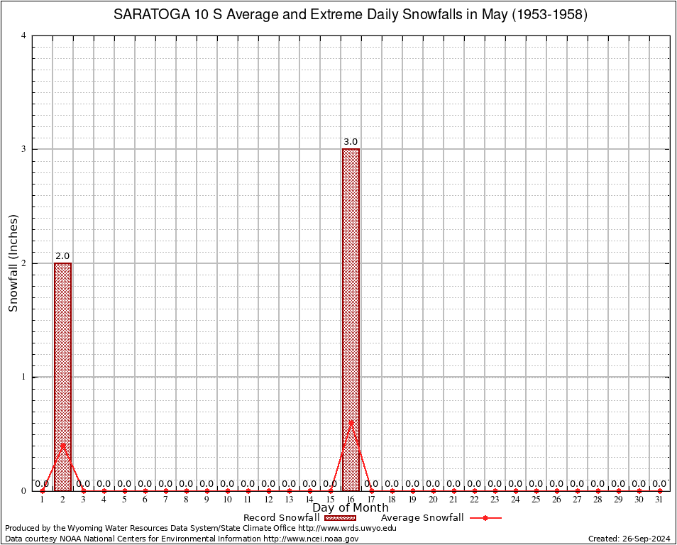 May Average and Extreme Daily Snowfall AMounts (1953-1958)