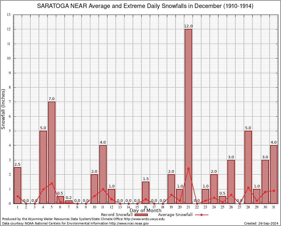 December Average and Extreme Daily Snowfall AMounts (1910-1914)