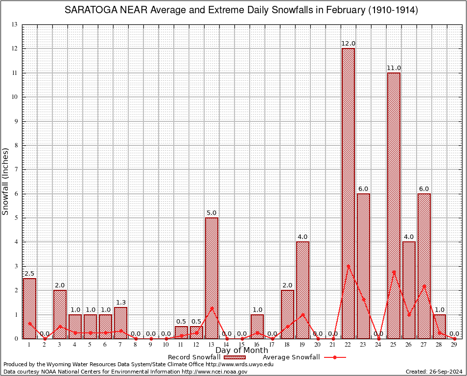 February Average and Extreme Daily Snowfall AMounts (1910-1914)