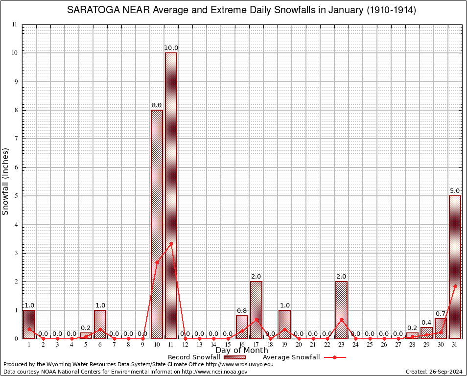 January Average and Extreme Daily Snowfall AMounts (1910-1914)