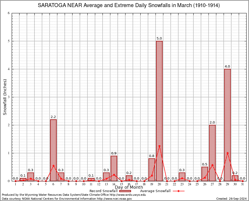 March Average and Extreme Daily Snowfall AMounts (1910-1914)
