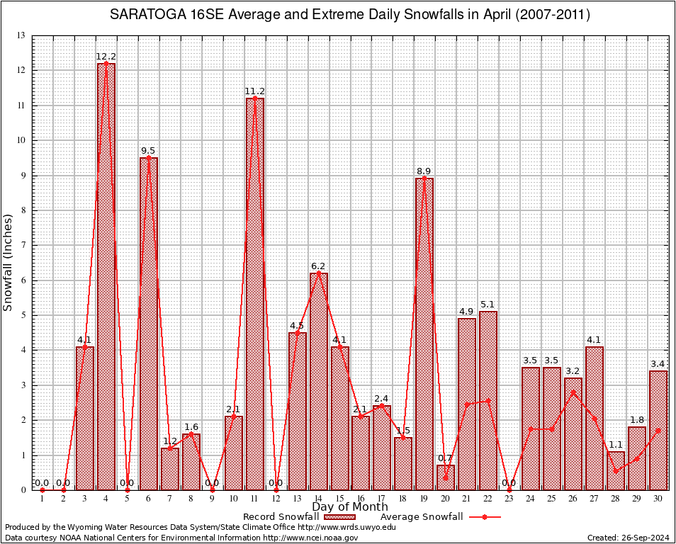 April Average and Extreme Daily Snowfall AMounts (2007-2011)