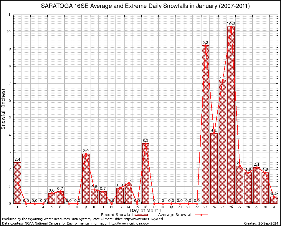 January Average and Extreme Daily Snowfall AMounts (2007-2011)