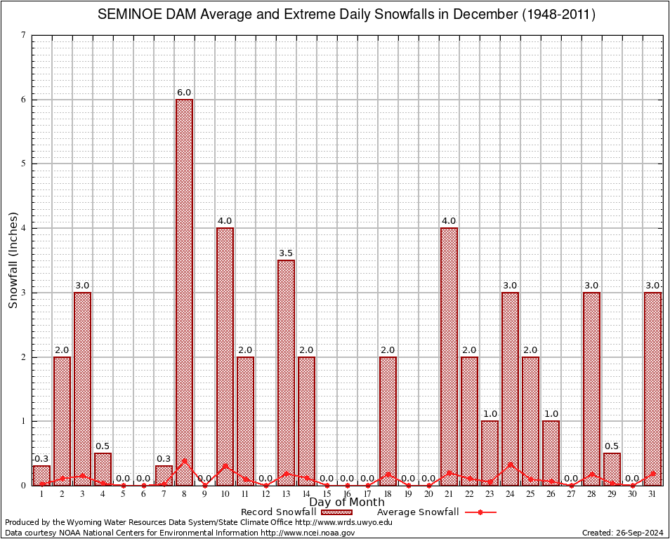 December Average and Extreme Daily Snowfall AMounts (1948-2011)