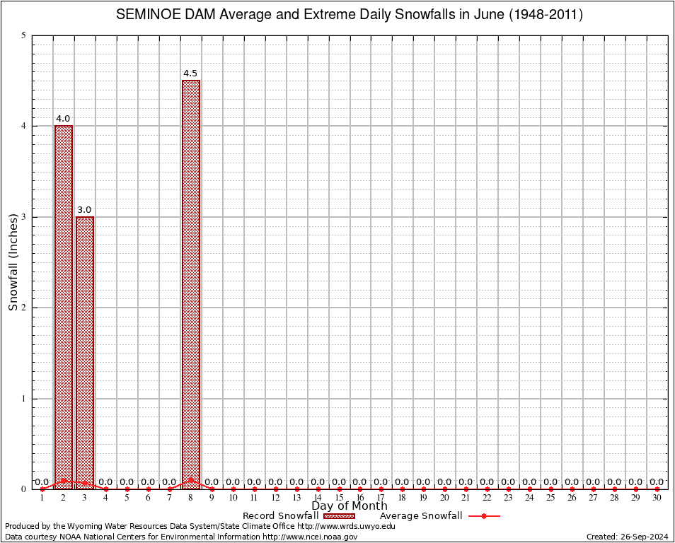 June Average and Extreme Daily Snowfall AMounts (1948-2011)