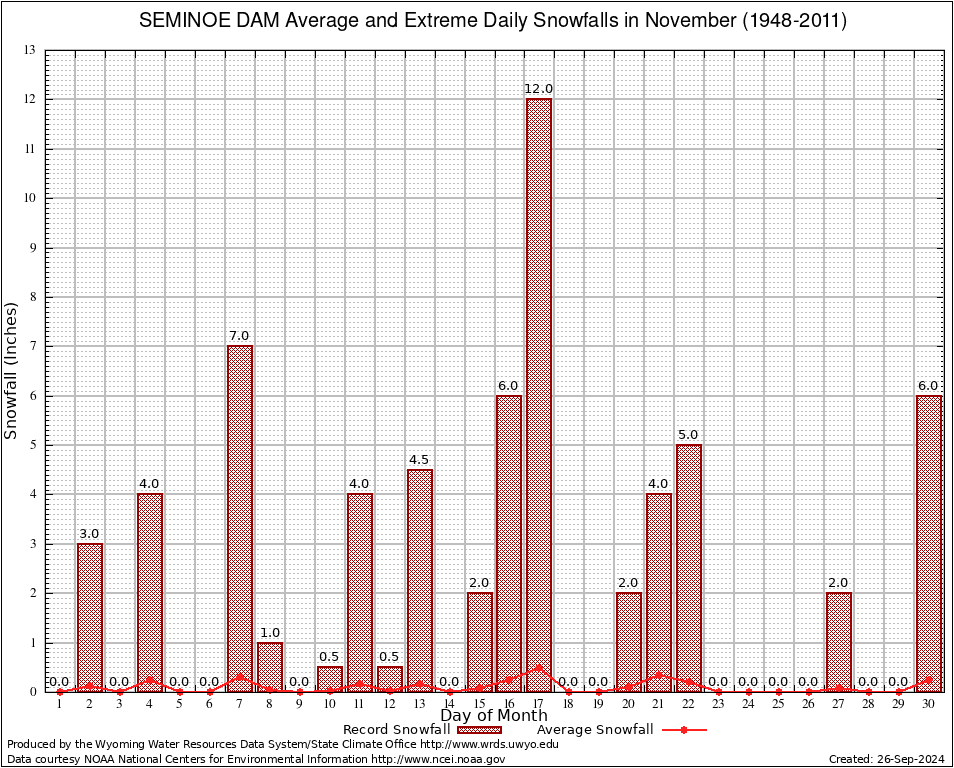 November Average and Extreme Daily Snowfall AMounts (1948-2011)