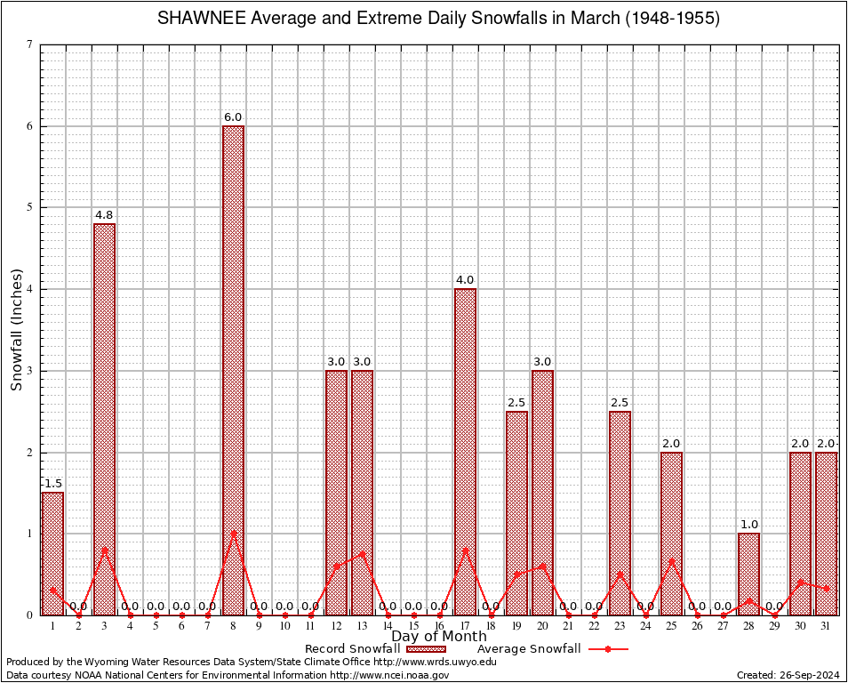 SHAWNEE (488095) March Average and Extreme Daily Snowfall AMounts (1948-1955) To index page for SHAWNEE