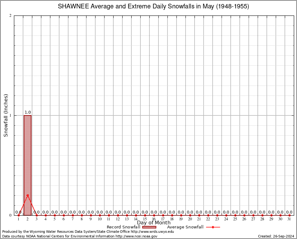 SHAWNEE (488095) May Average and Extreme Daily Snowfall AMounts (1948-1955) To index page for SHAWNEE