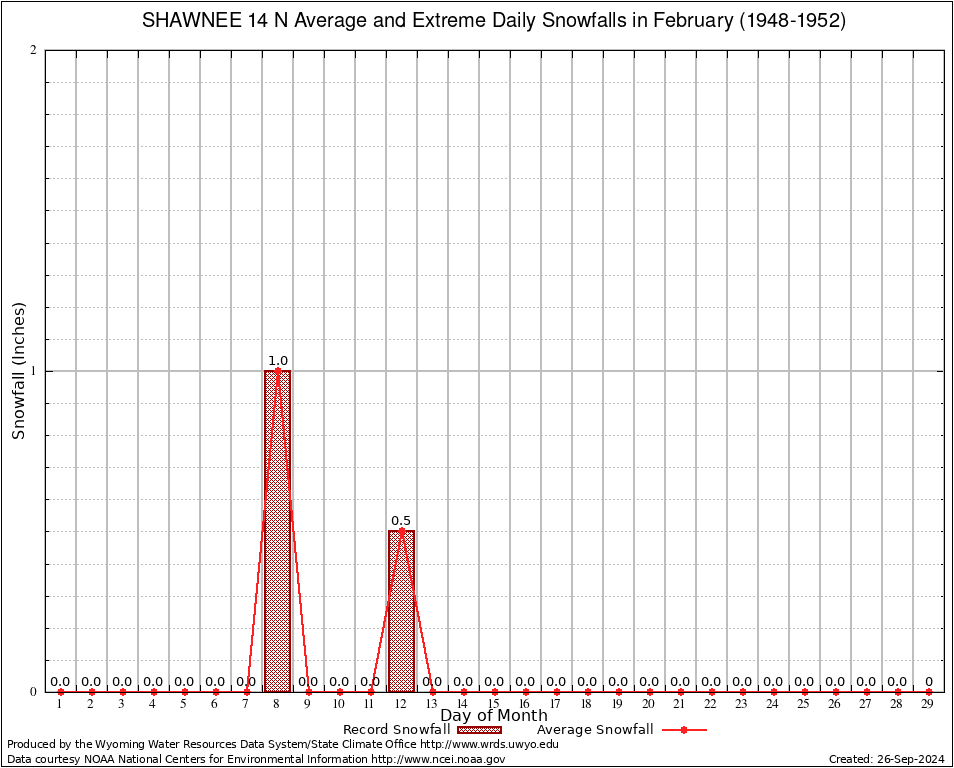 February Average and Extreme Daily Snowfall AMounts (1948-1952)