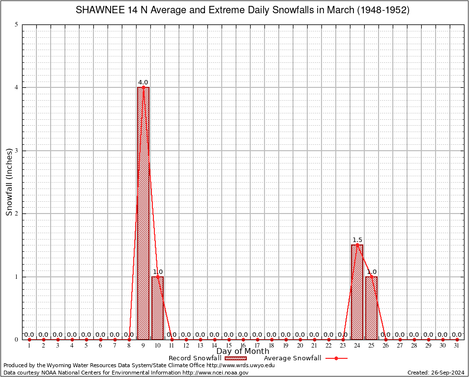 March Average and Extreme Daily Snowfall AMounts (1948-1952)