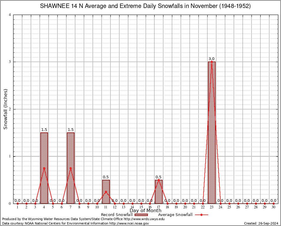 November Average and Extreme Daily Snowfall AMounts (1948-1952)