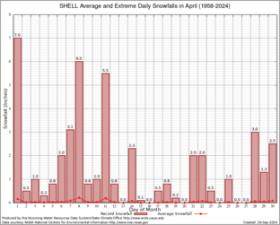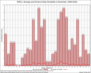 Record Extreme and Average Daily Snowfall (1958-2024)