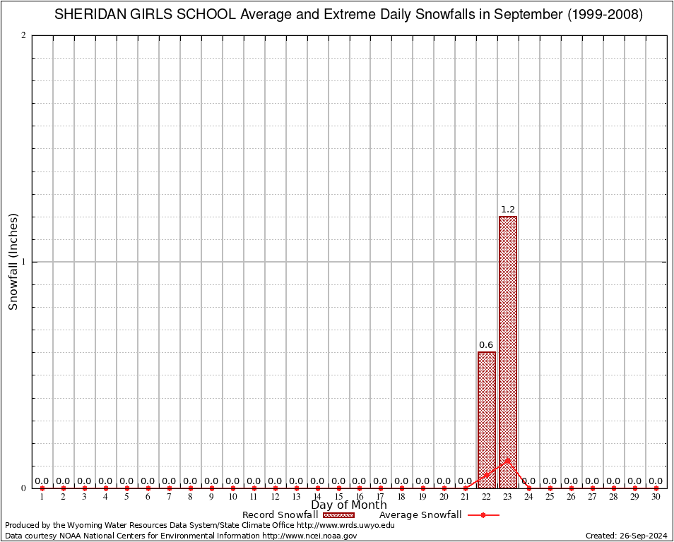 September Average and Extreme Daily Snowfall AMounts (1999-2008)