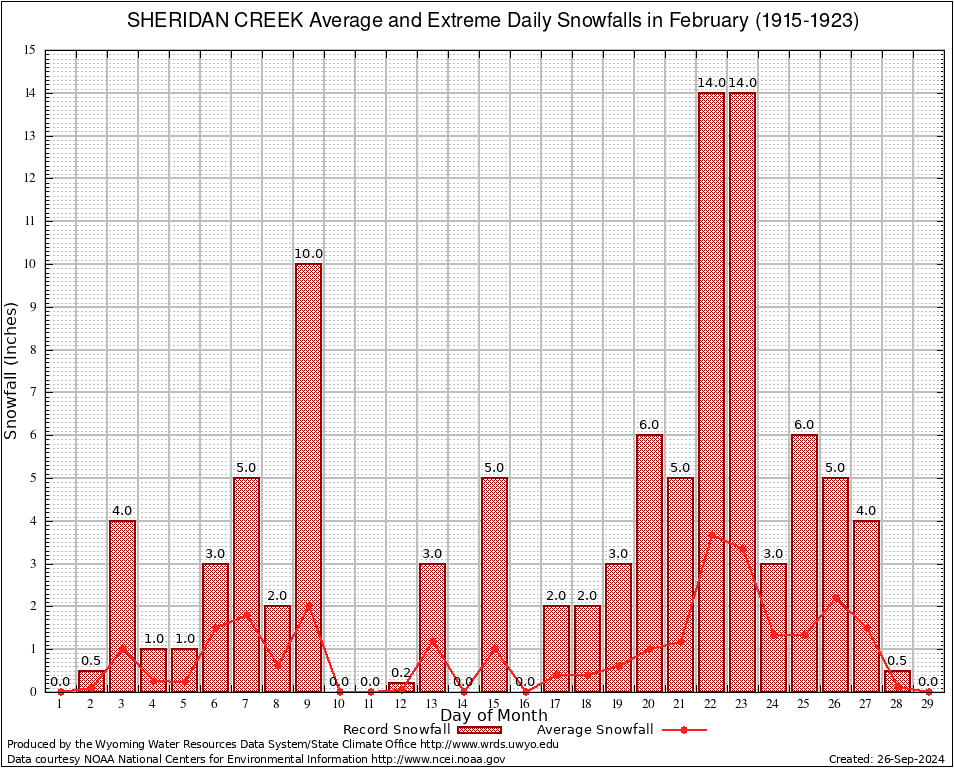 February Average and Extreme Daily Snowfall AMounts (1915-1923)