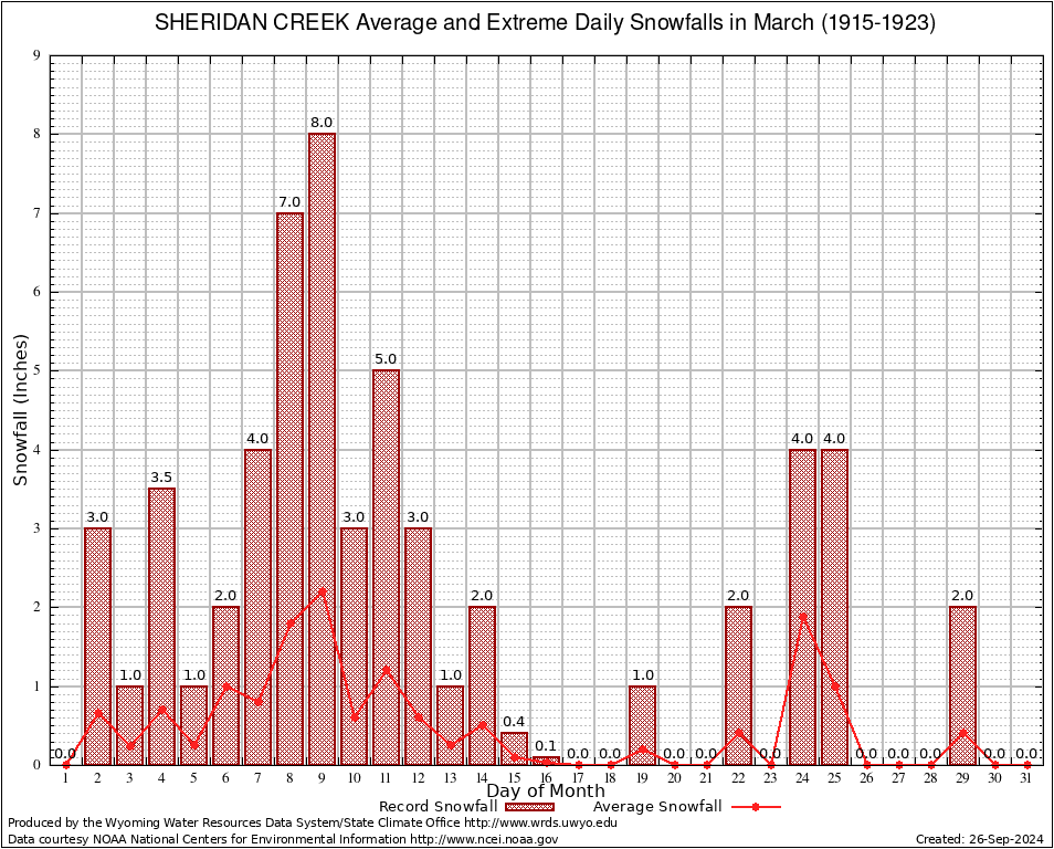 March Average and Extreme Daily Snowfall AMounts (1915-1923)
