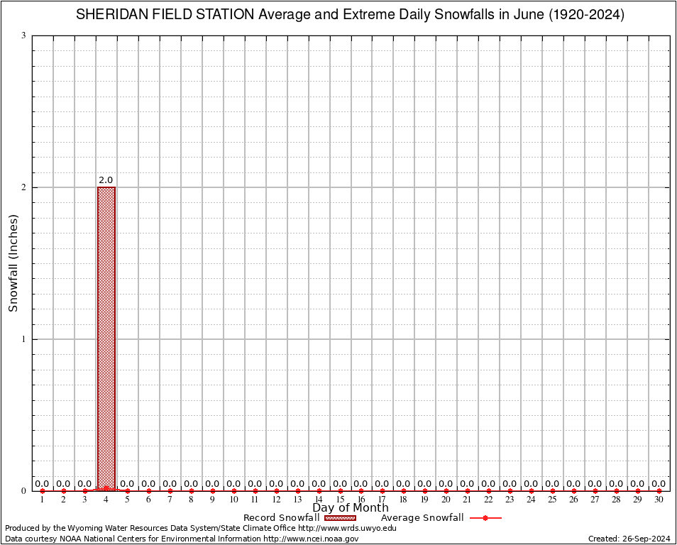June Average and Extreme Daily Snowfall AMounts (1920-2024)